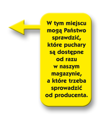 | | INDEKS | OPIS | BRUTTO | | G26764/1 | Puchar G26764/1, ø8, h.24 | 45,13 | | G26764/2 | Puchar G26764/2, ø10, h.25 | 47,50 | | G26764/3 | Puchar G26764/3, ø10, h.27 | 50,83 |